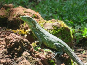 After our morning birding walk this morning, we then boarded a boat and went across the river to the National Park in Tortuguero, home to an extinct volcano and an innumerable amount of species of everything living you could imagine, in all the groups of animals (reptiles, amphibians, mammals, birds, insects, bats…). The pictures we were able to capture on the boat ride and in the park were spectacular. They include some of the following: